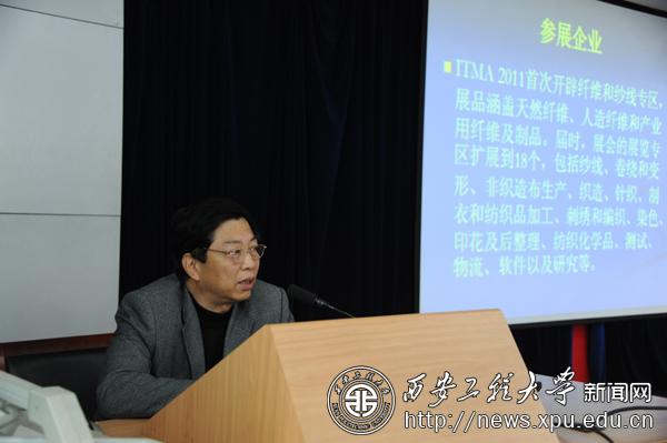 孙卫国教授在汇报会上,通过对立达(Rieter)、特吕茨勒(Trützschler)、欧瑞康巴马格(Oerlikon Barmag)、道斯特(Durst)、卡尔迈耶(Karl Mayer)、施托克印染技术公司(Stork Prints)等国际著名纺织、印染、针织、服装机械制造商展示的最新工艺、技术和设备的分析,总结了参展纺织机械高速、高产,自动化水平高等7个特点。他认为,纺织机械领域的研究要立足于基础研究,其根本动力在于客户的需求,新成果的研发需要长期的科研积累及交叉学科的辅助,他指出纺织机械领域的研究趋势是高产、高质量,连续化、短流程。