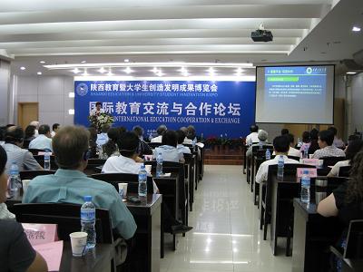6月26日上午,陕西教育暨大学生创造发明成果博览会“国际教育交流与合作论坛”在曲江国际会展中心A馆二楼报告厅举行。校长高勇、国际合作与交流处处长胡伟华、管理学院院长郭伟、职业技术学院院长赵展谊等应邀出席了论坛。教育厅副厅长郭立宏致开幕词,我校校长高勇、日本香川大学校长一井真比古、美国塞勒姆州立大学副校长艾克莉、西安外国语大学副校长王峰等分别介绍了学校国际交流与合作的成果与经验。